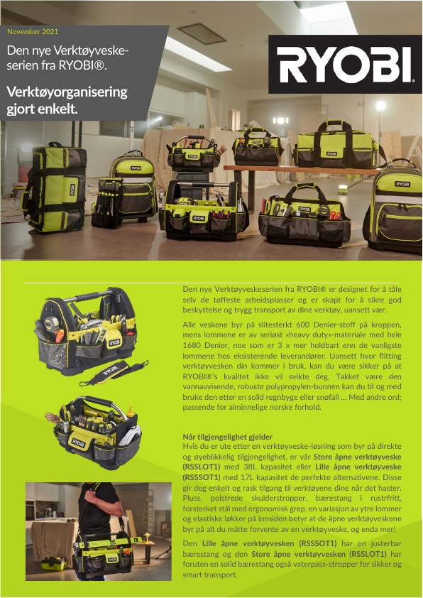 Her finner du pressemeldinger, nyheter og artikler om Ryobi